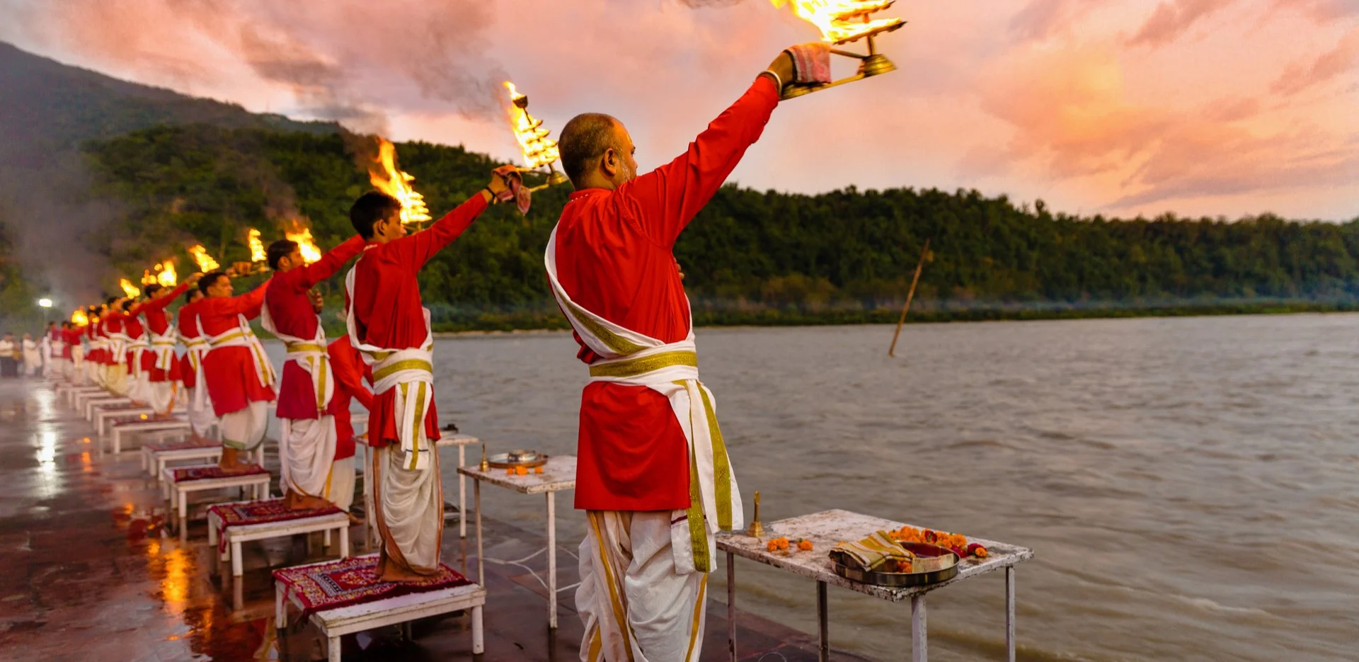 18th Nov -Day 1: Rishikesh. Arrival & welcome ceremony in our Resort in Rishikesh. Opening circle, fire ceremony and Ārati on the banks of Gangā river. Dinner and overnight in Rishikesh.